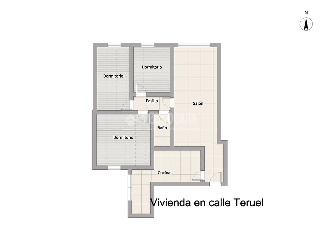 La vivienda se distribuye en entrada, cocina, salón, tres dormitorios y cuarto de baño.